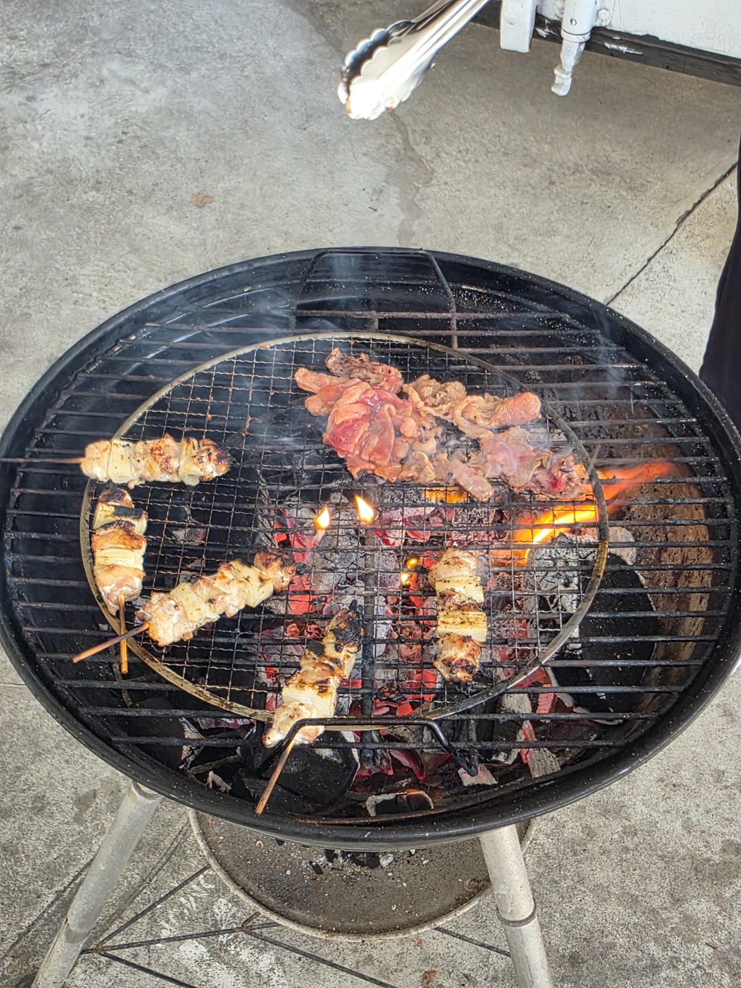脂多めのお肉を焼いて、炎上している様子です