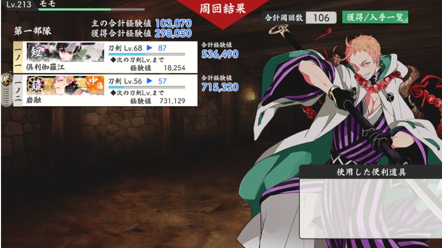 今回頑張ってくれたのは岩融、20階で鬼周回おつかれさま!!!!