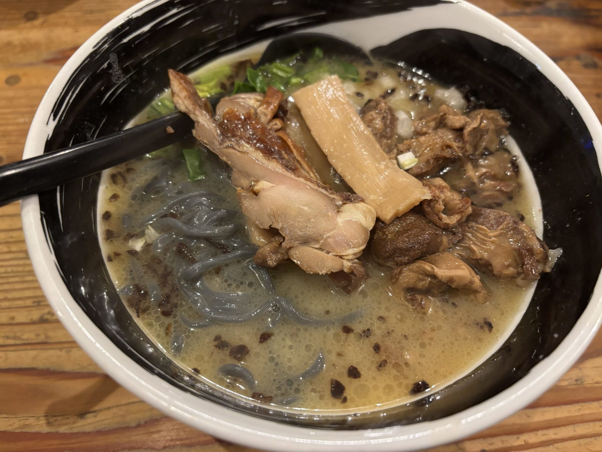 一瞬でラーメンの口になったので、ラーメン食べて帰りました。竹炭練りこみ麺でビックリしたけどガチで美味かった。