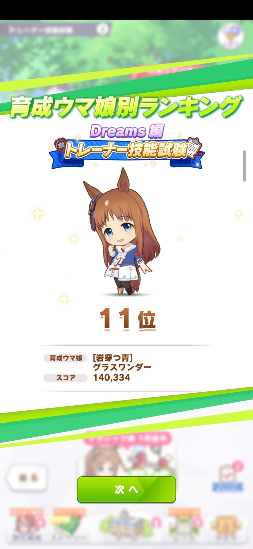 終了前日は40位前後だったのですが、賢さフォーエバーヤングを完凸させたので更新できまして11位まであげることができました