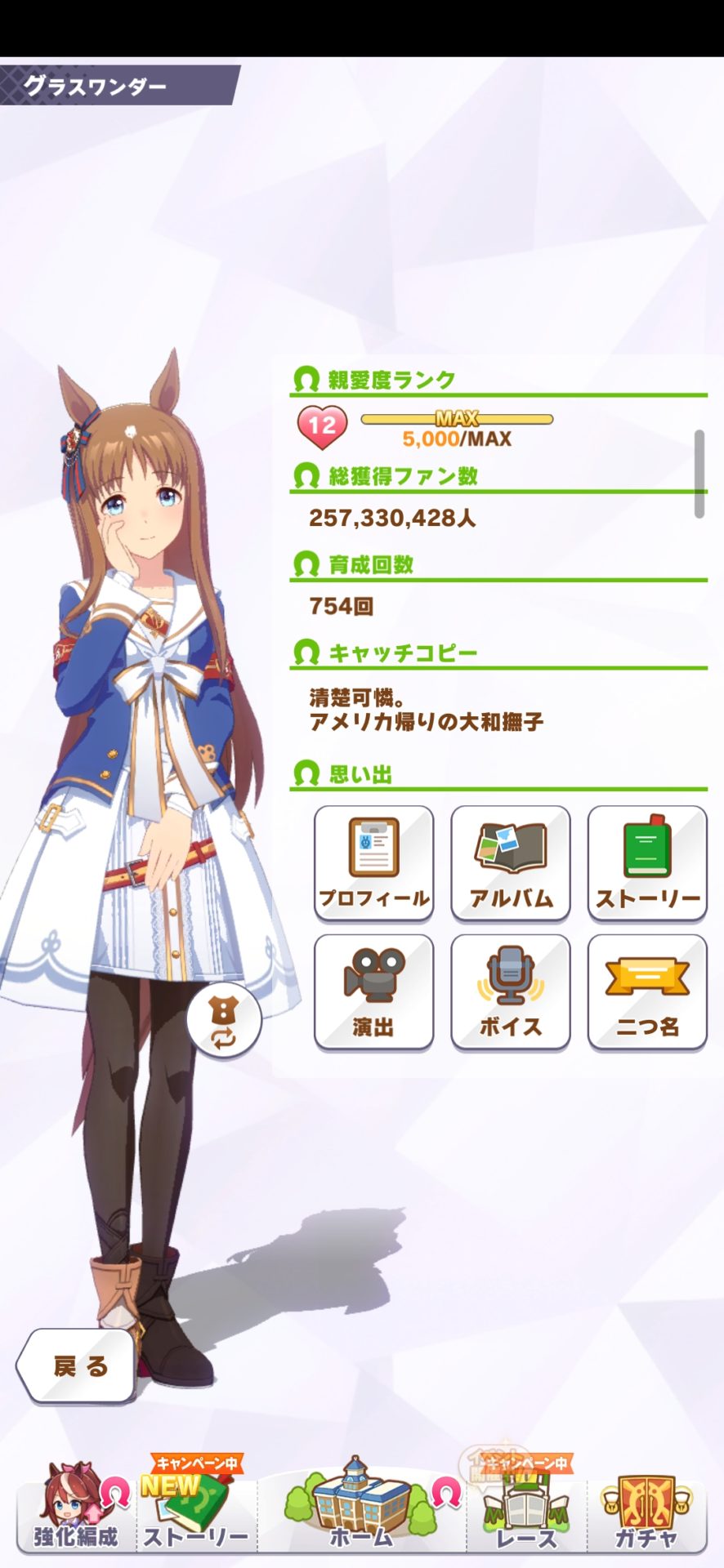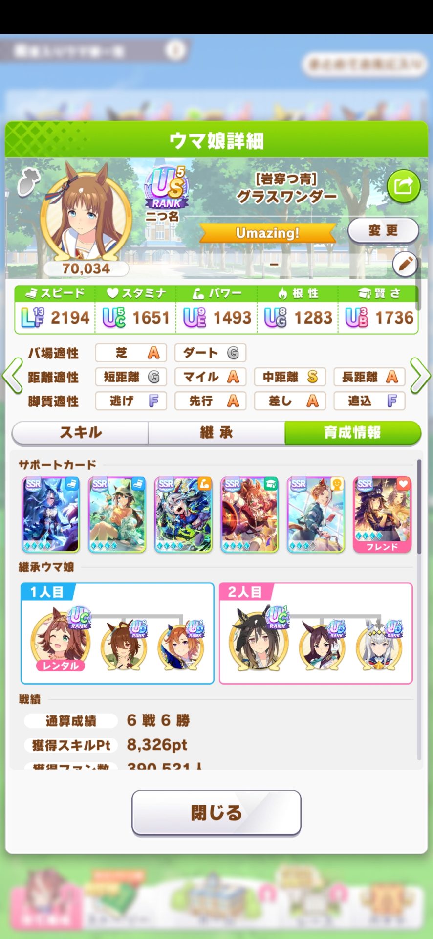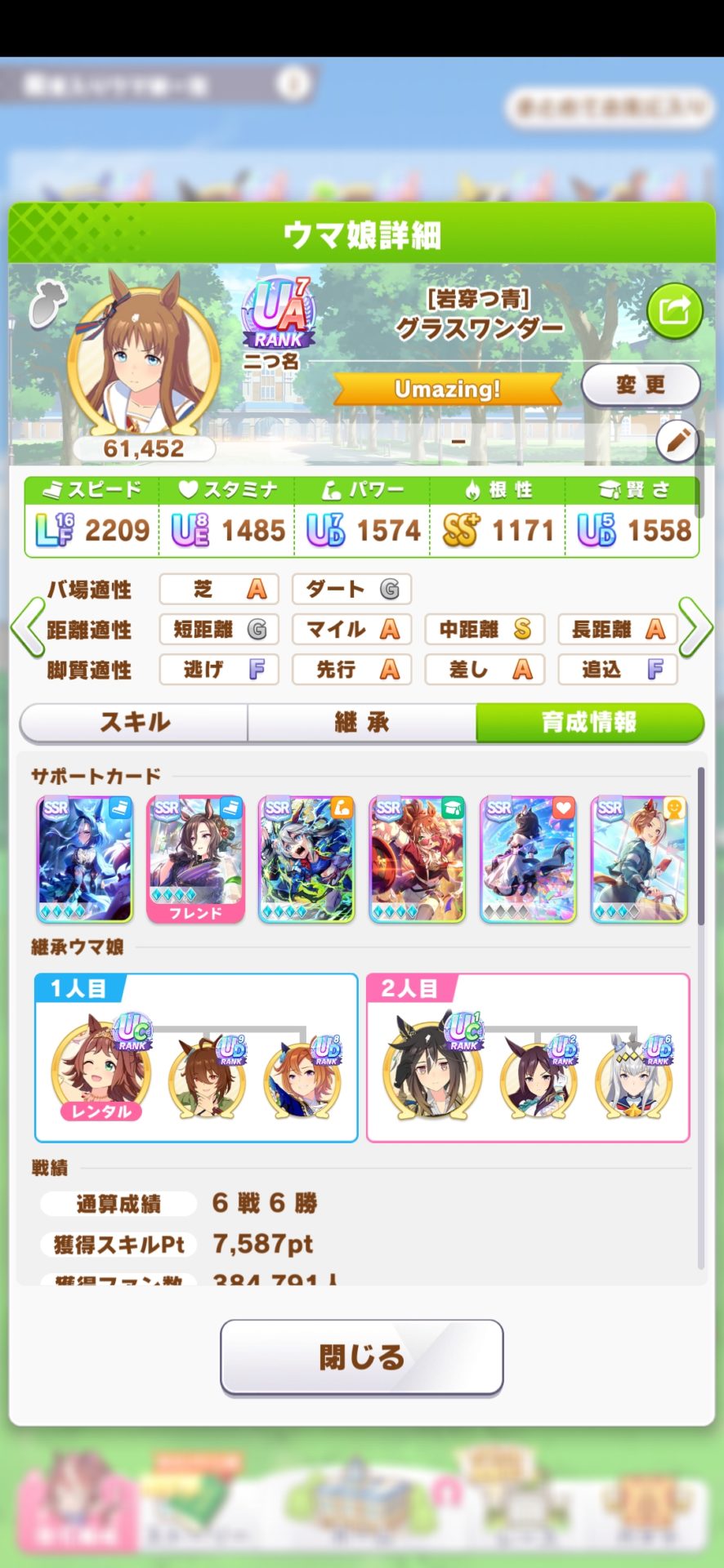 おまけとして競技場用として適当に育成したグラスワンダーを貼っておきます。